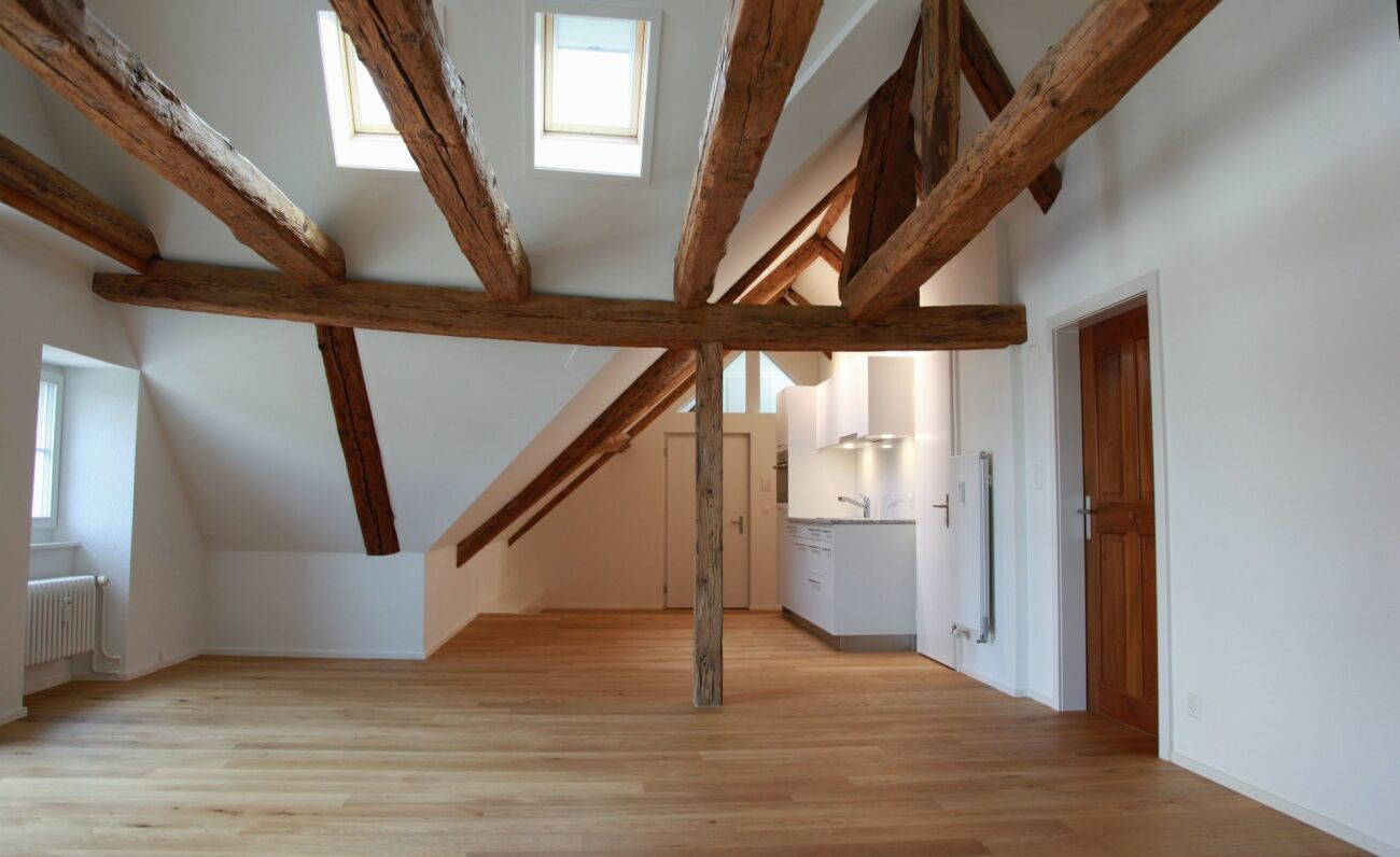 An Toplage in der Altstadt von Frauenfeld vermieten wir in der geschichtsträchtigen Liegenschaft Haus zum Schwert (mit Lift) eine einzigartige Dachwohnung an 1-2 Personen, welche das Besondere lieben und das Flair der Altstadt geniessen möchten.