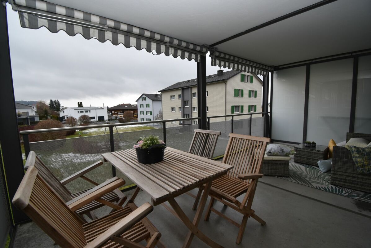 - Sonniger, gedeckter Balkon