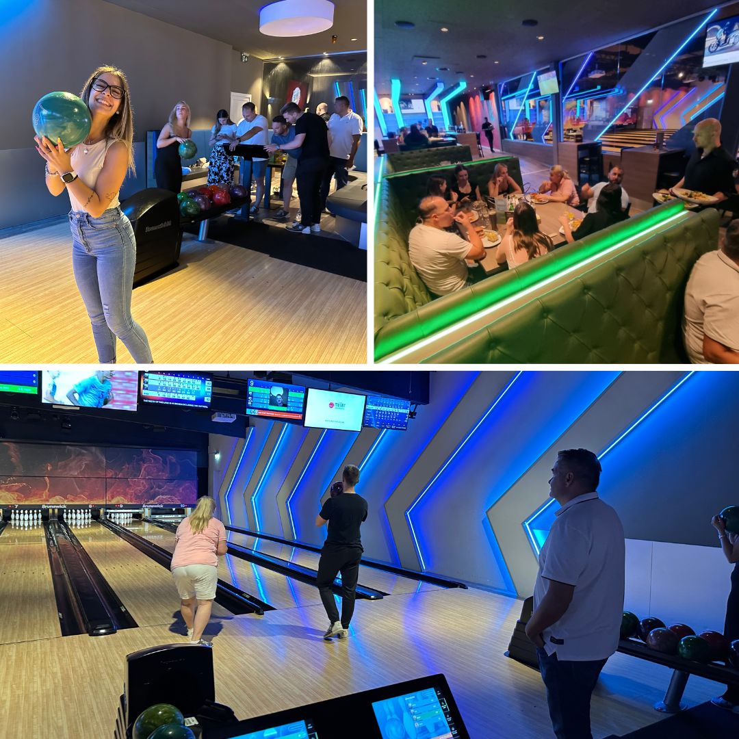 Nach drei produktiven Stunden war es dann Zeit, den Arbeitsmodus auszuschalten und den Spass-Modus einzuschalten. Unser Treffpunkt? Das Bowling Five in Thayngen. Hier haben wir unser Geschick auf der Bowlingbahn unter Beweis gestellt und den Abend mit einem leckeren Abendessen abgerundet. Eine perfekte Gelegenheit, um gemeinsam zu lachen, Erfolge zu feiern und den Teamzusammenhalt zu stärken.